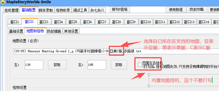 二:范围左右挂机 (只支持没有障碍物的平台)