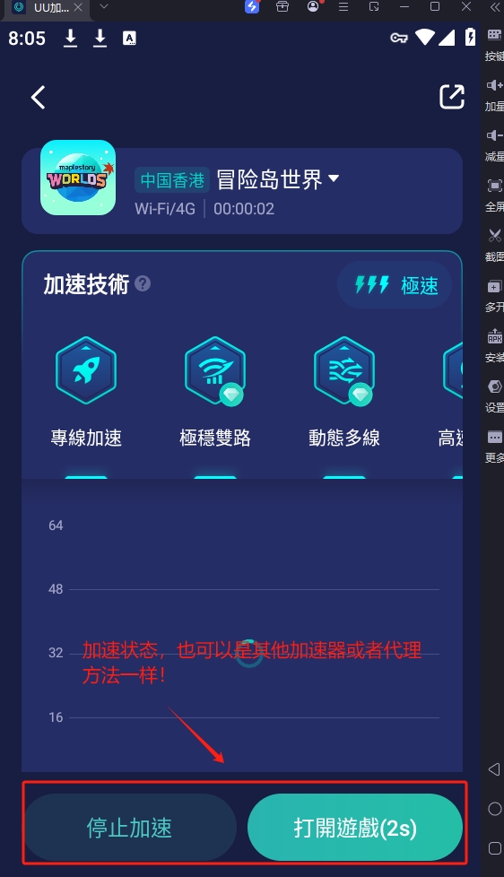 四:手动启动模拟器和加速器(加速器必须启动到加速状态,如下图所示)