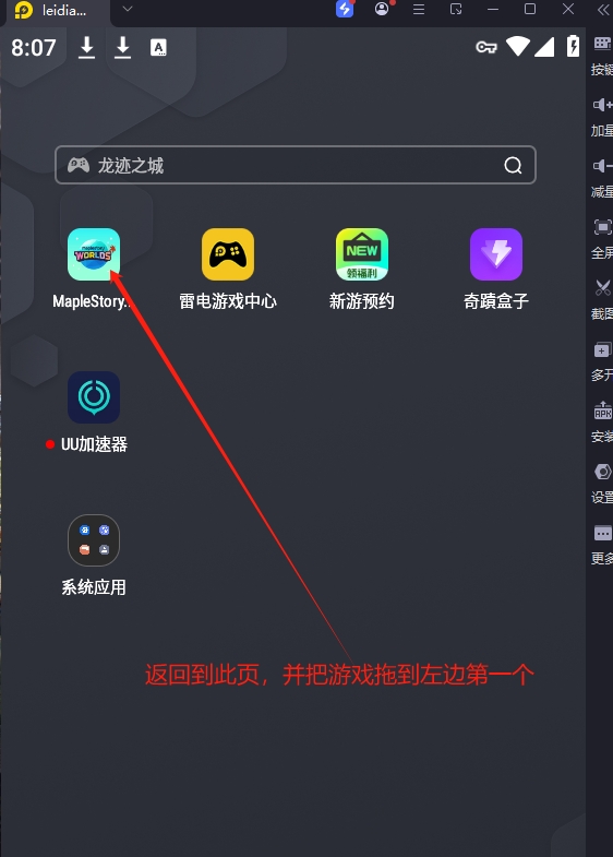 五:加速器启动并加速后,返回模拟器首页,并把游戏拉倒第一位
