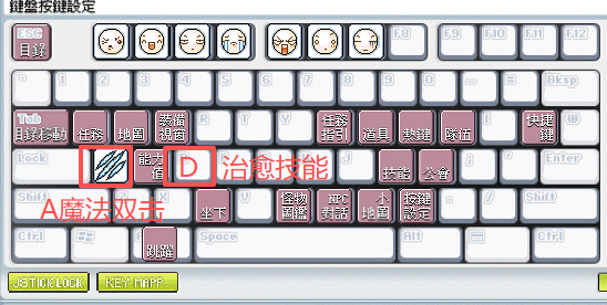 组合键: A 放 魔法双击, D 放 群体治愈 (攻击范围x:270 y:10)
