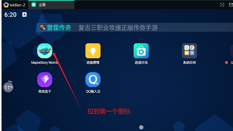 五:加速器启动并加速后,返回模拟器首页,并把游戏拉倒第一位
