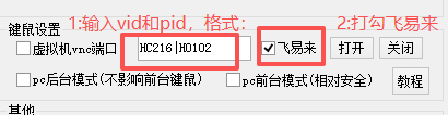 用法 :插入盒子后,输入vid和pid,打勾飞易来即可(如下图所示)