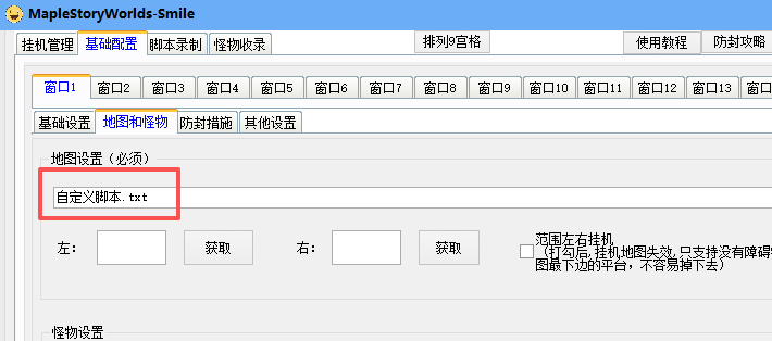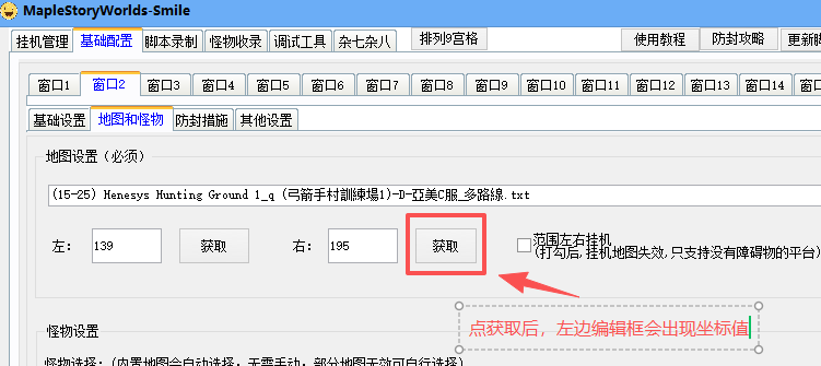 二:范围左右挂机 (只支持没有障碍物的平台)